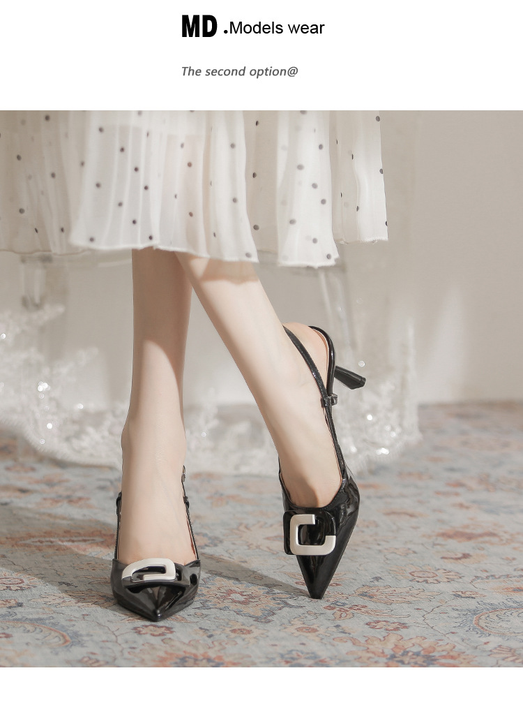 Select options This product has multiple variants. The options may be chosen on the product page Add to wishlist Compare7cm Metal Buckle High Heel Shoes for Women – French Style PU Leather Pointed Toe Thin Heel Shoes Non-slip