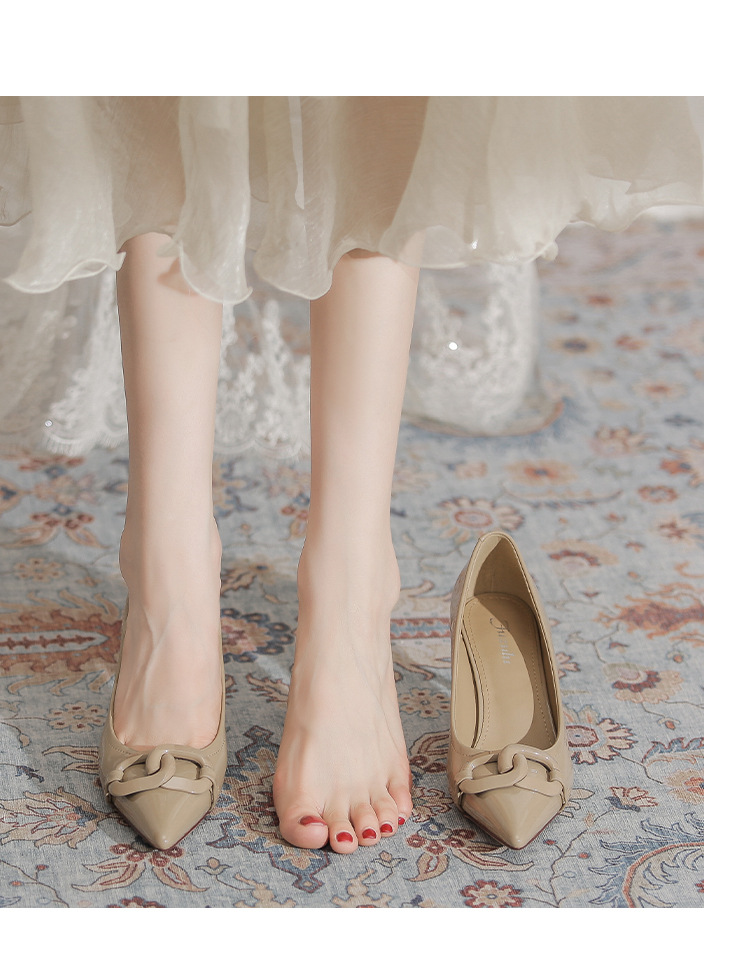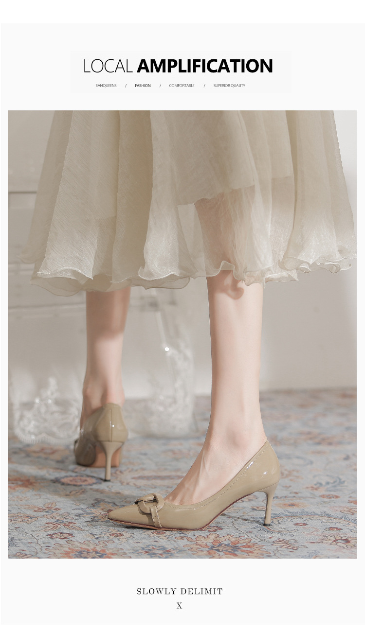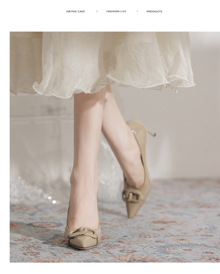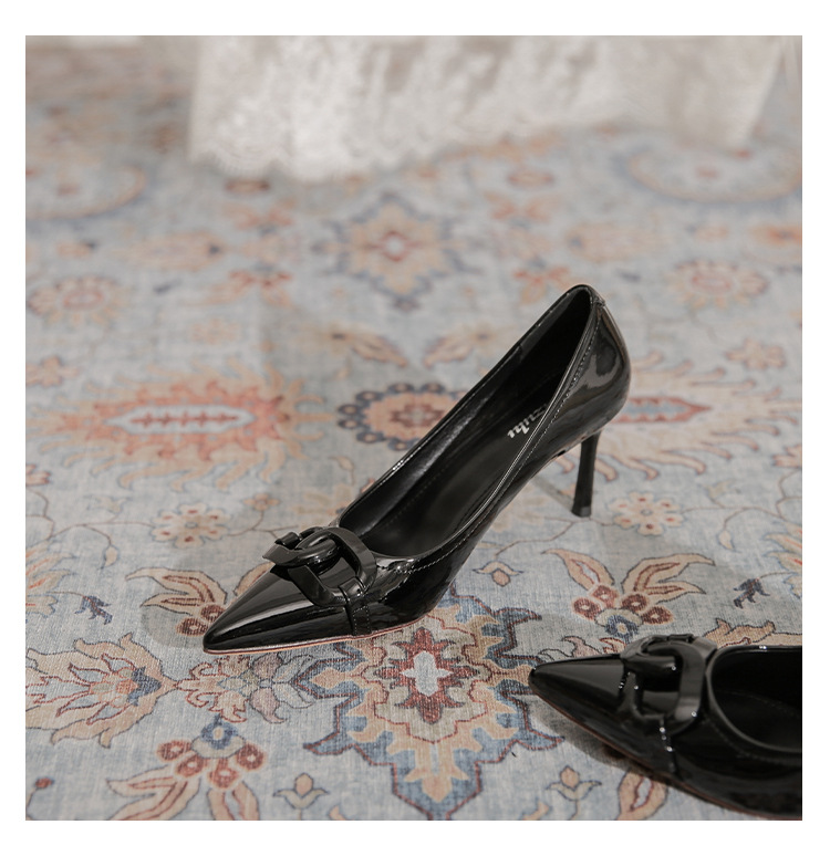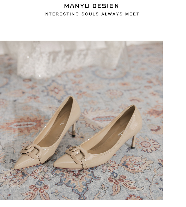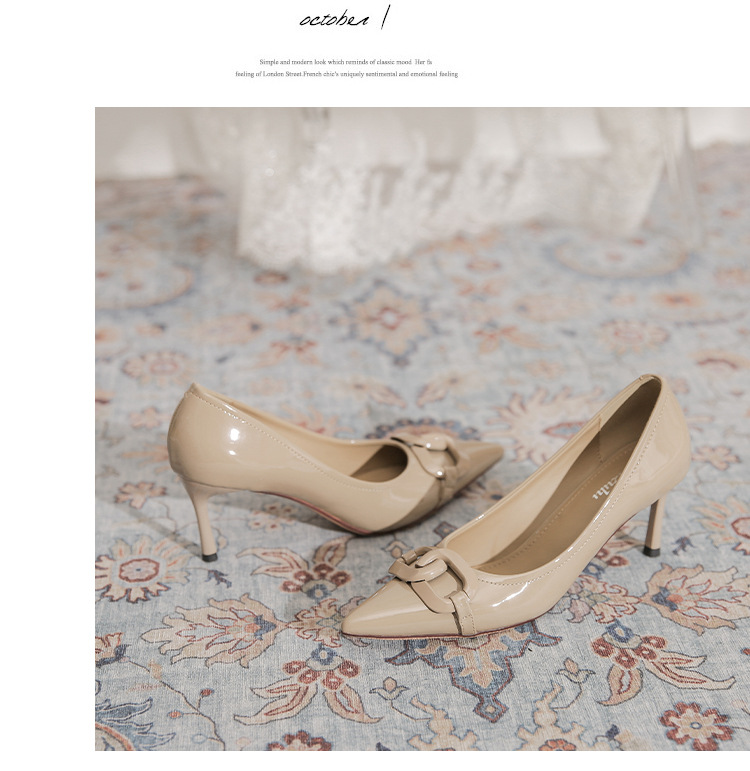 Select options This product has multiple variants. The options may be chosen on the product page Add to wishlist Compare7cm Metal Buckle High Heel Shoes for Women – French Style PU Leather Pointed Toe Thin Heel Shoes Non-slip