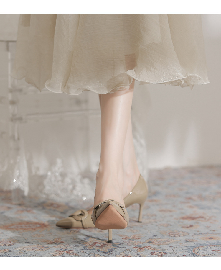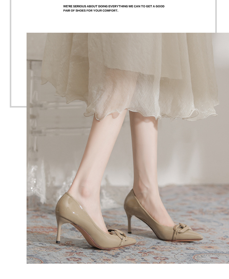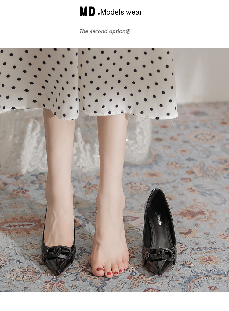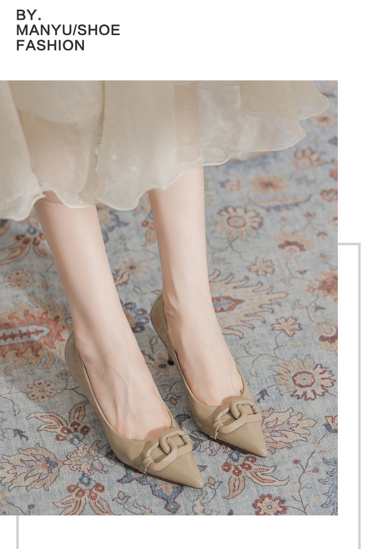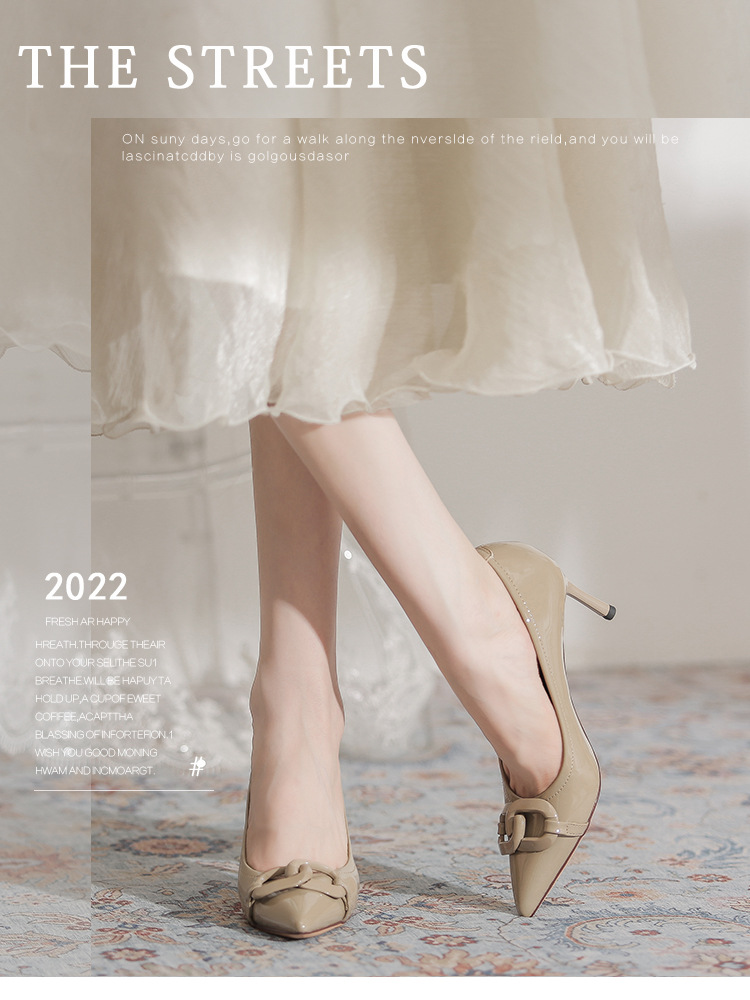 Select options This product has multiple variants. The options may be chosen on the product page Add to wishlist Compare7cm Metal Buckle High Heel Shoes for Women – French Style PU Leather Pointed Toe Thin Heel Shoes Non-slip