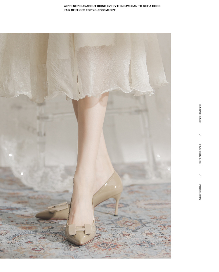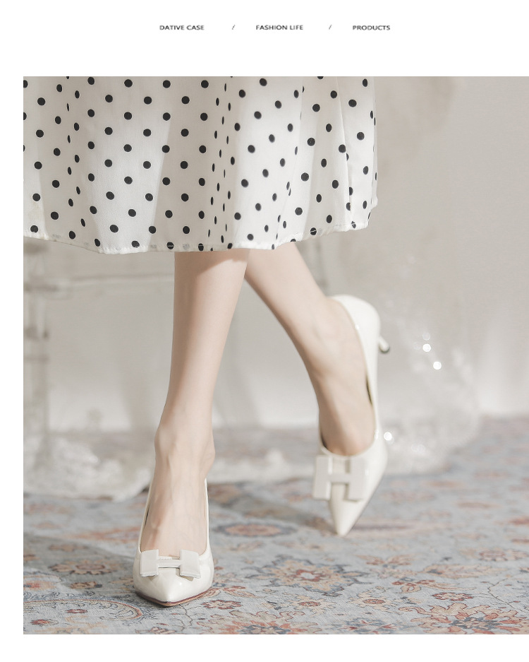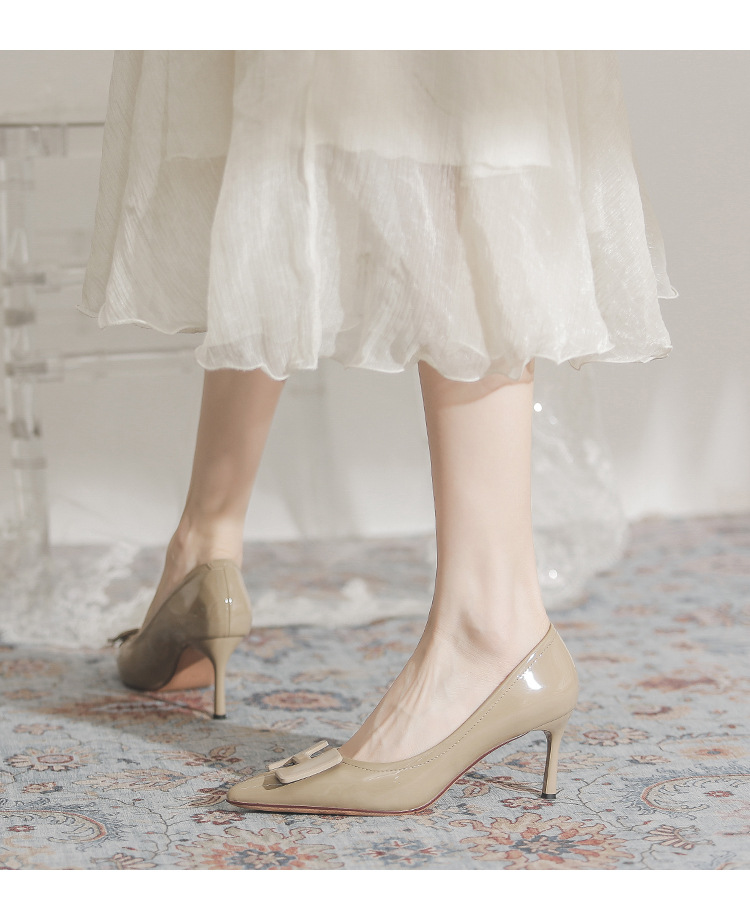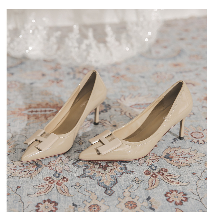 French Tip Office Stiletto Heel Shoes with H Buckle Classic Thin Heel and Shallow Mouth Single Shoes