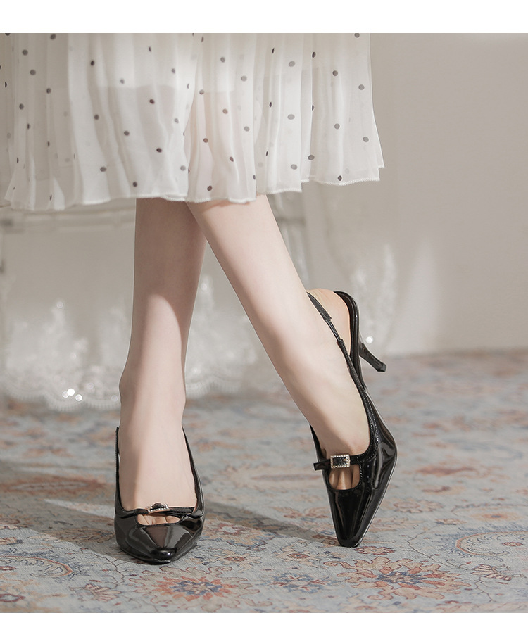 Women’s Superfine Leather Stiletto Heels with Pointed Toe and One-Strap Design