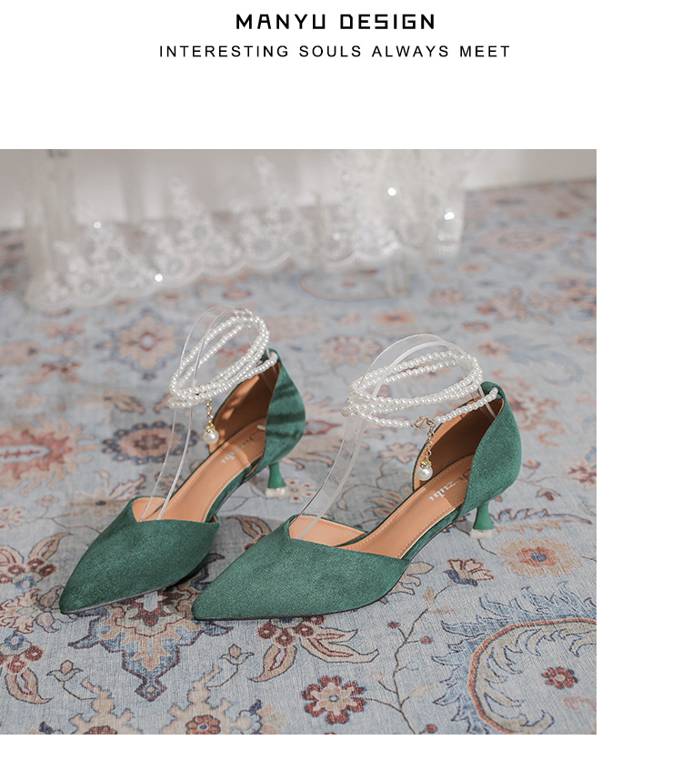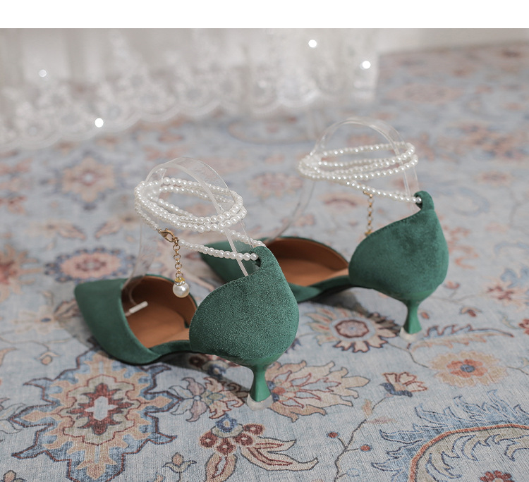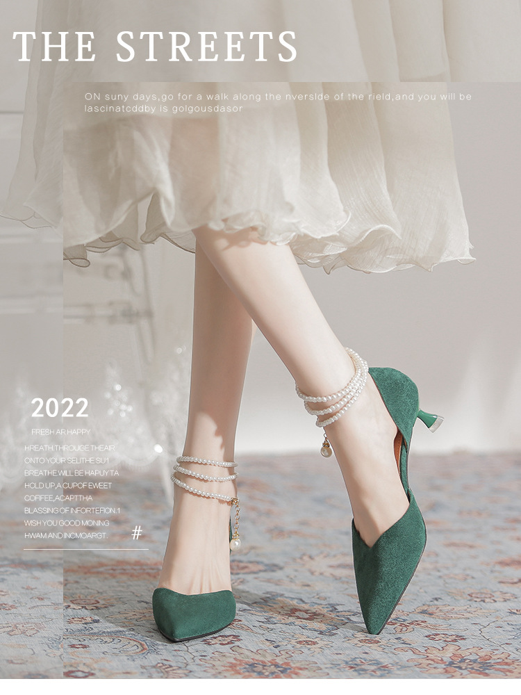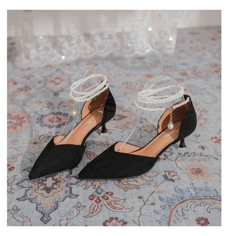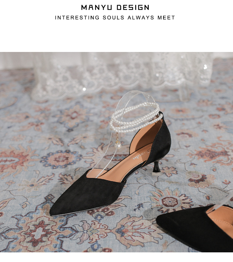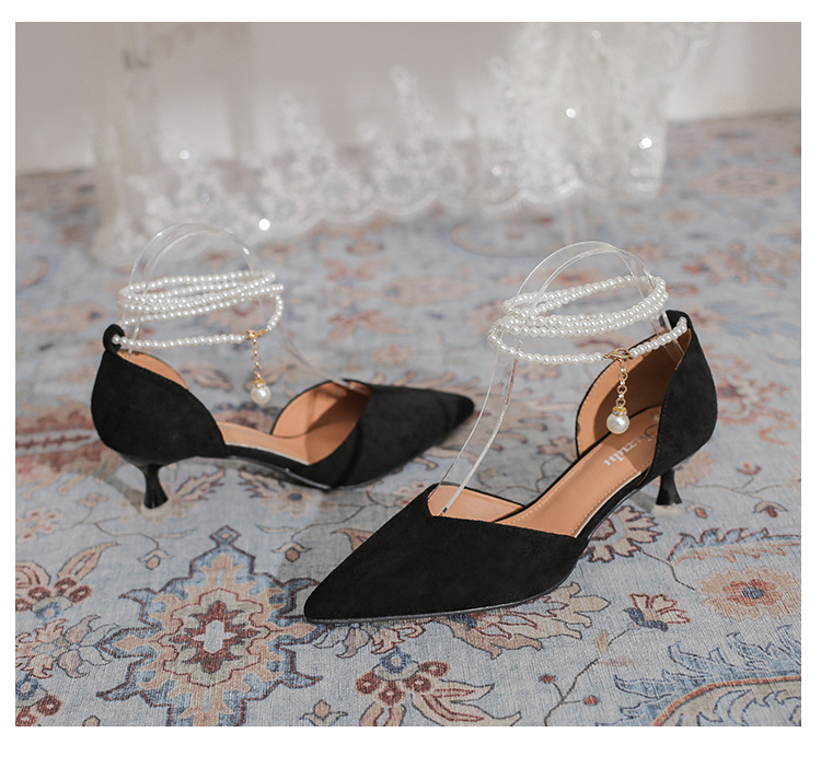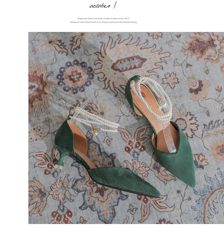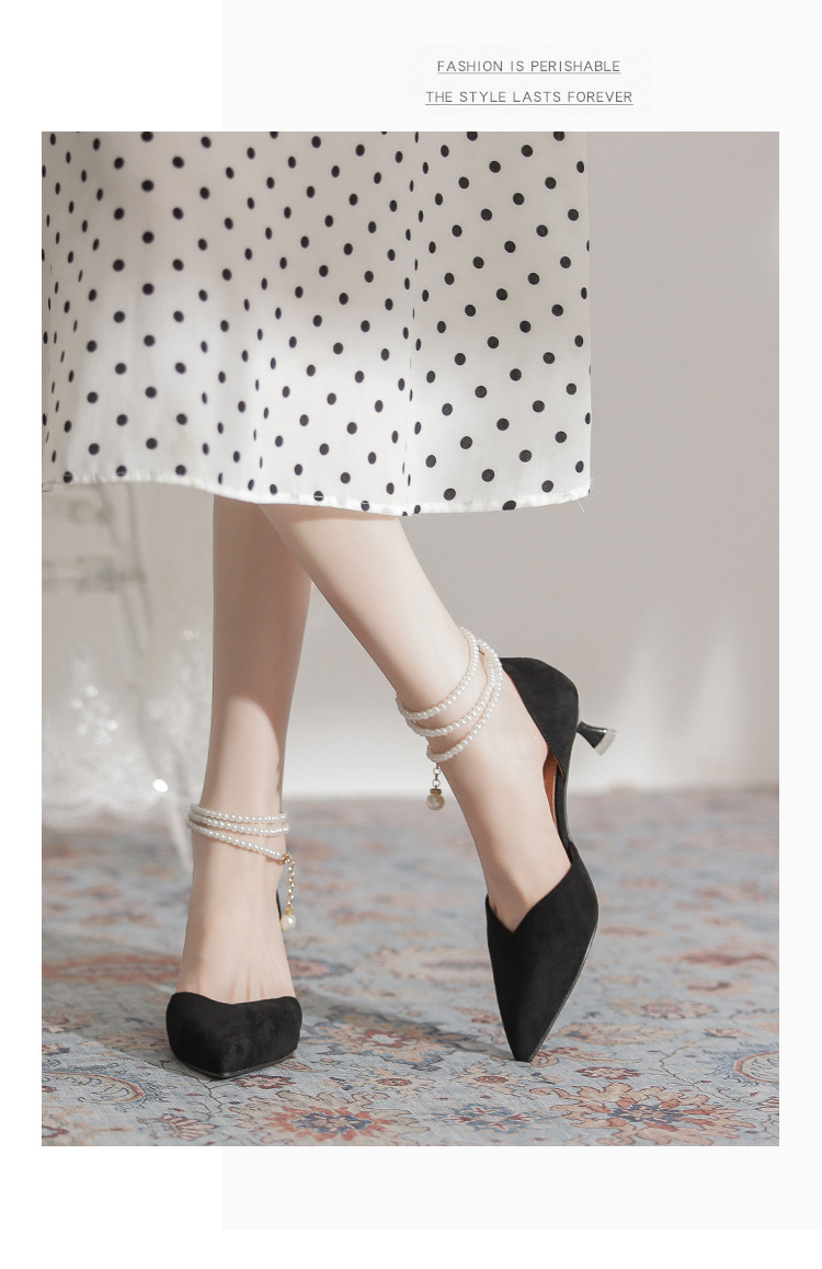 Be the first to review “Fashionable High Heel Shoes with French Vintage Low Heel and Pearl Chain Buckle” Cancel reply