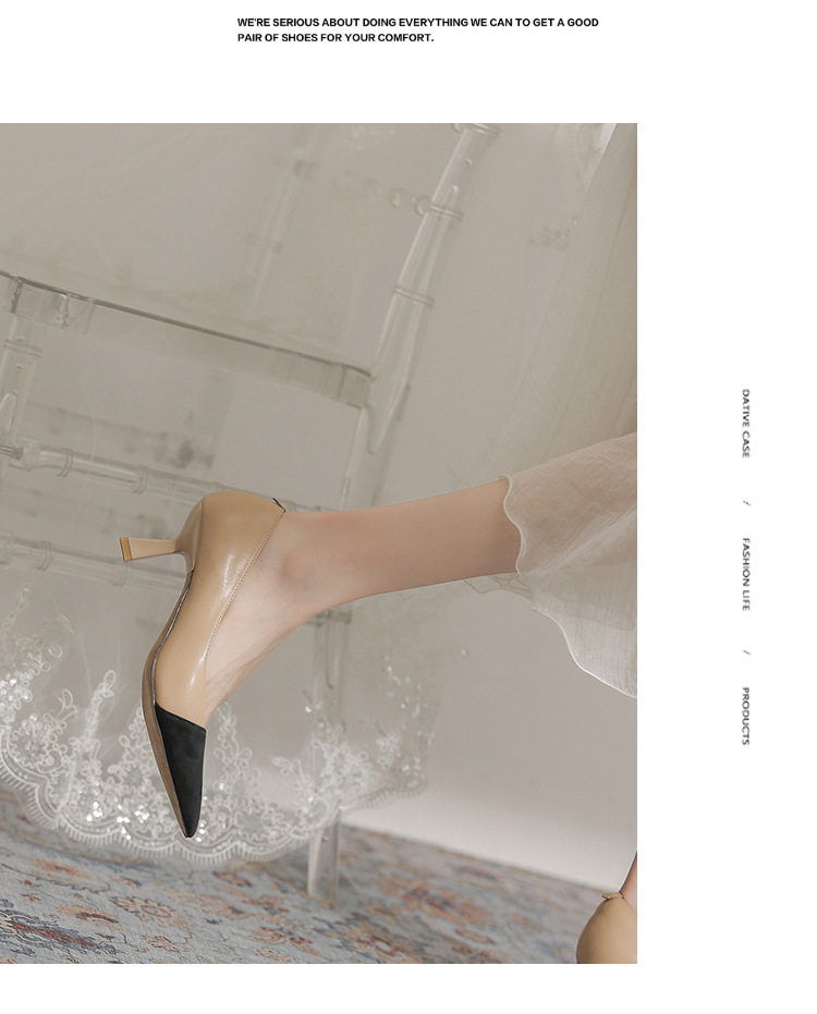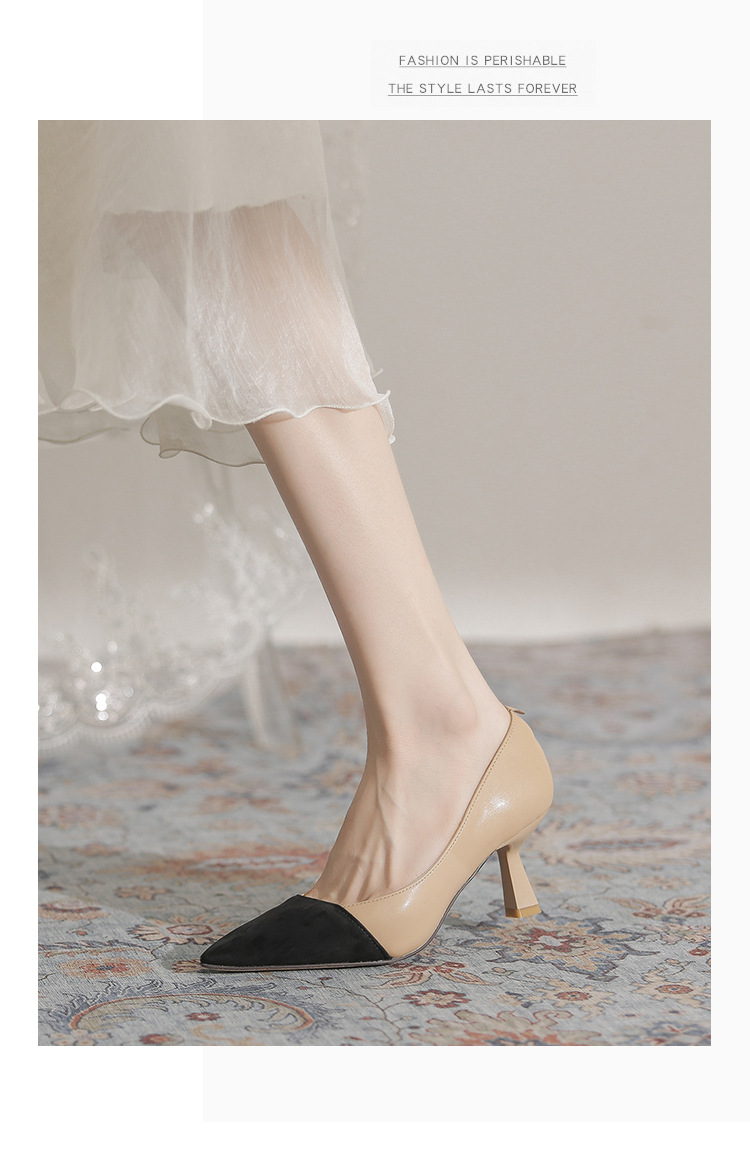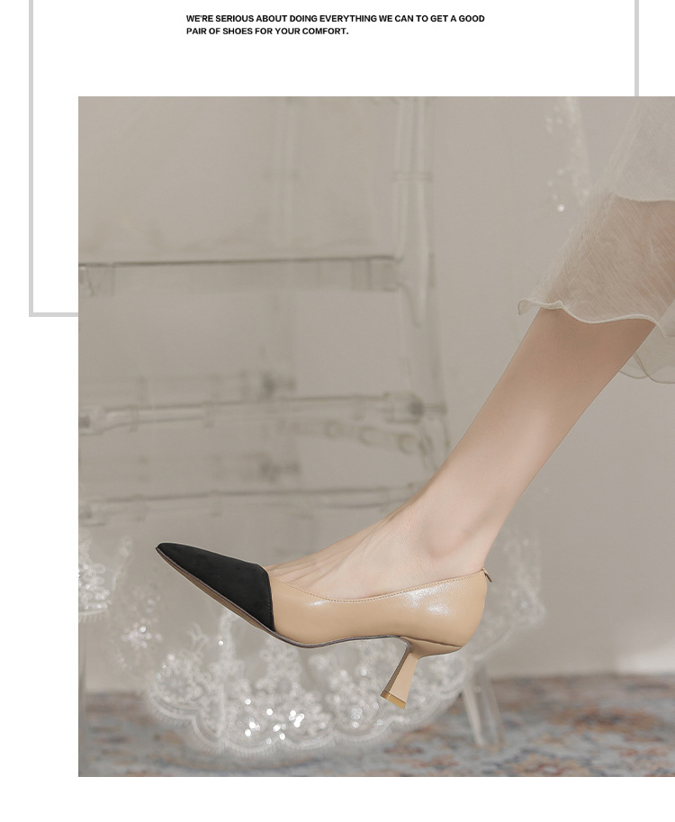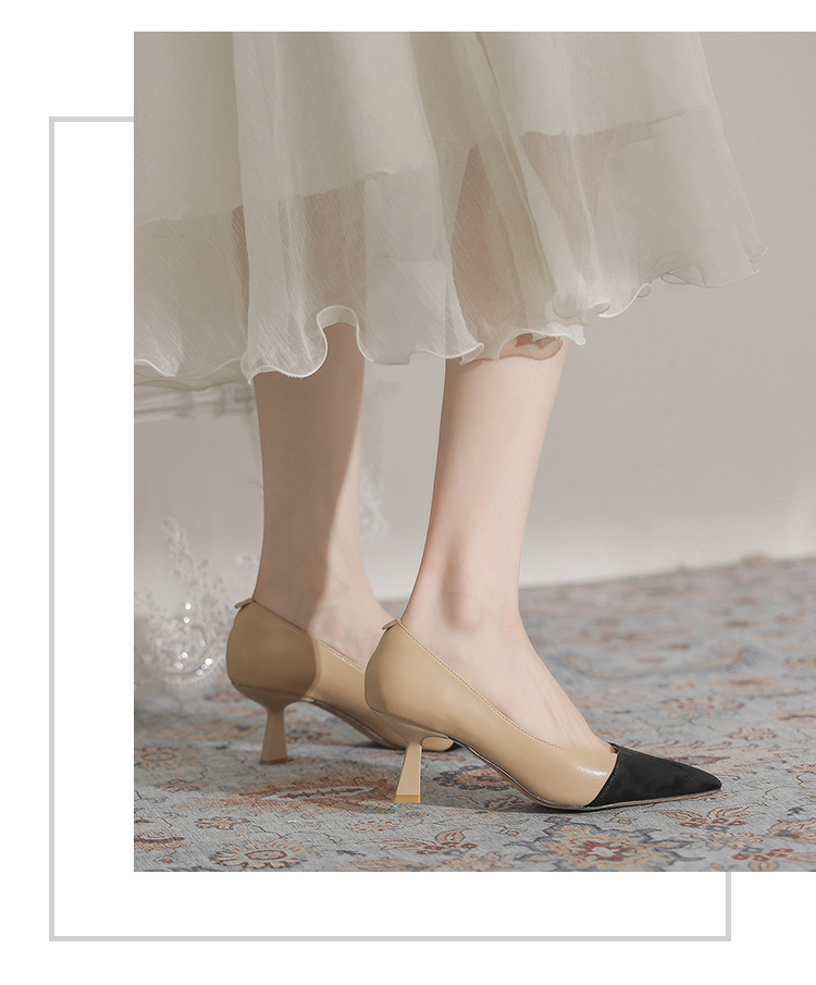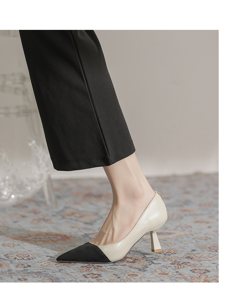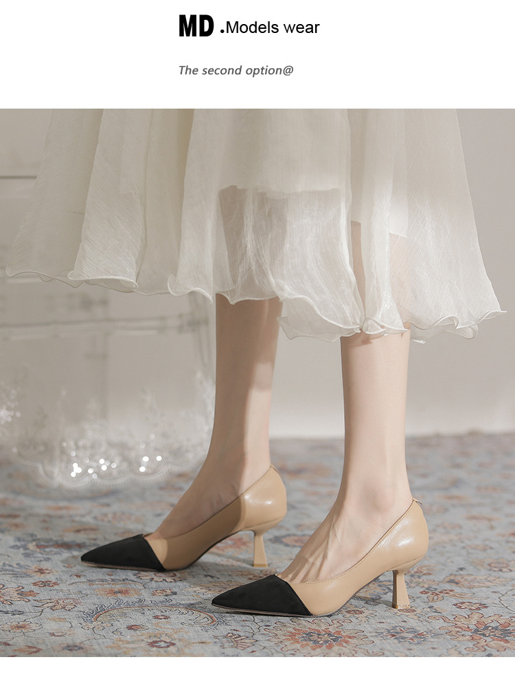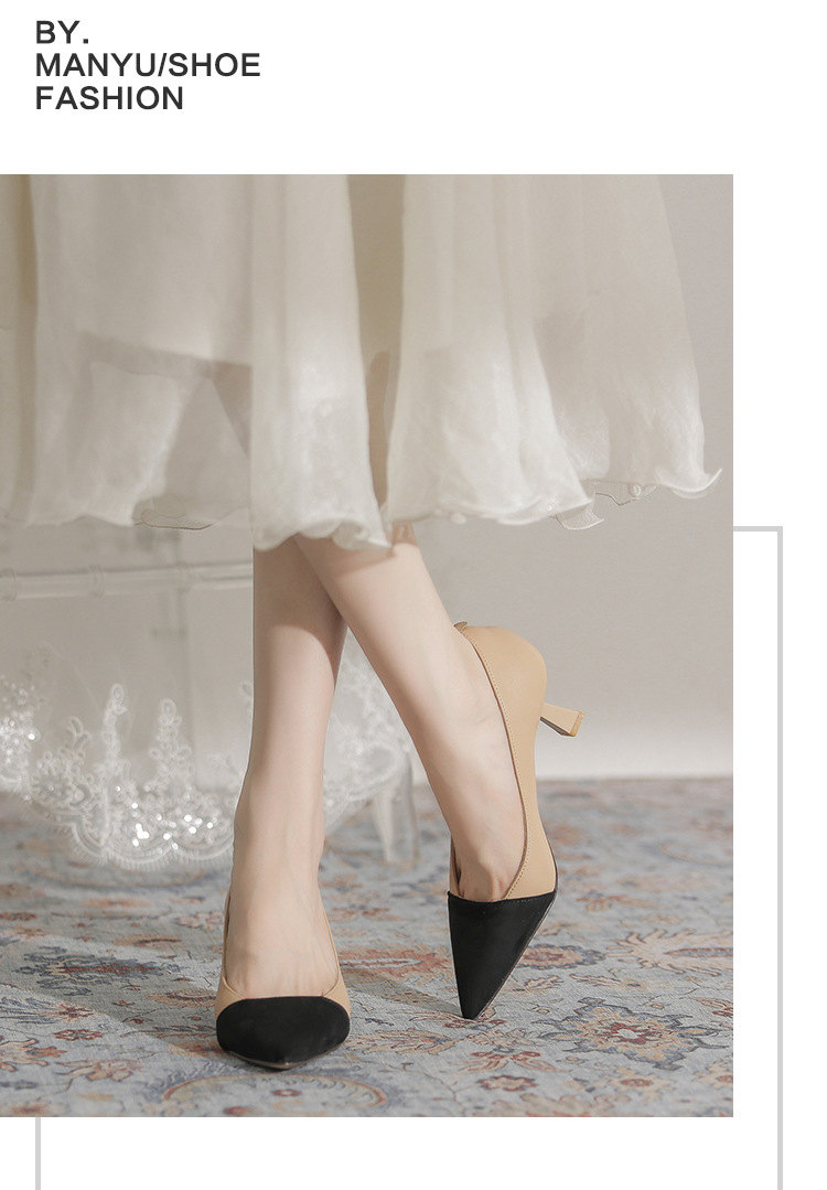 1350-1 Classic Small Fragrance Color Matching Shoes for Women, Mid Heel, Superfine, Casual, Everyday Wear, PU Sole, Slip-on, Low Heel, Pointed Toe, Work Shoes